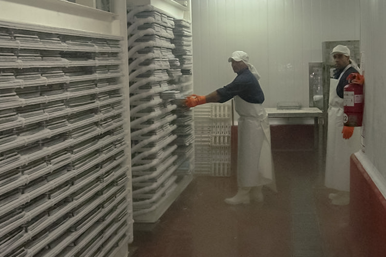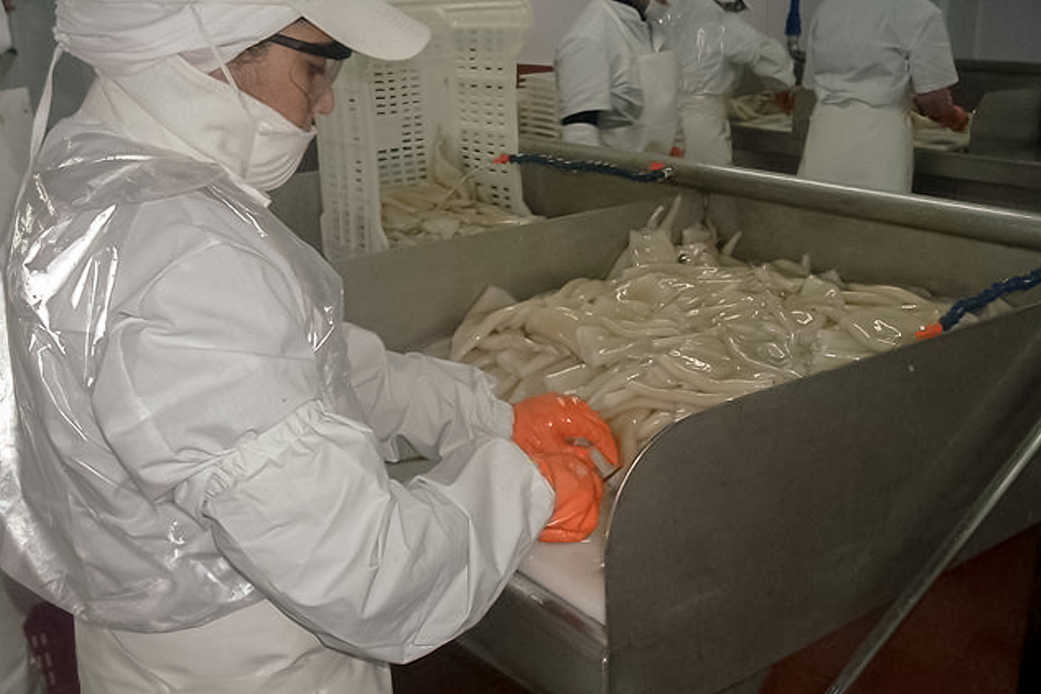 Dentro de nuestras instalaciones se destaca la planta de procesamiento, donde se generan diversos productos de valor agregado a partir de materia prima de diferentes especies como: calamar, langostino y merluza.